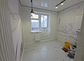 Дизайн: Современный интерьер в светлых тонах, керамогранит под мрамор, трековое освещение и эффектные акцентные стены.